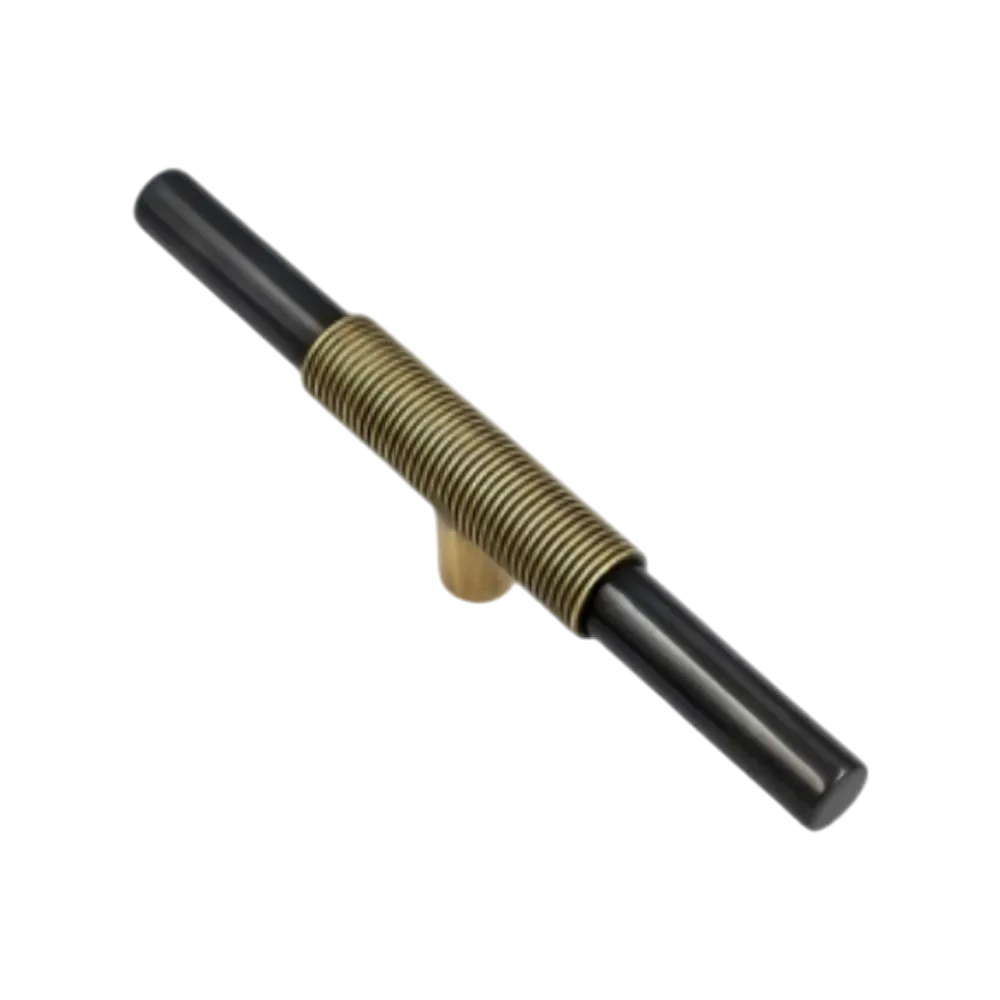 Le design se caractérise par un barreau circulaire de couleur Canon de fusil, une teinte subtile qui met en valeur la texture du métal. Le fil de laiton s'enroule élégamment autour de la partie centrale, apportant une touche décorative et un raffinement supplémentaire à l'ensemble.