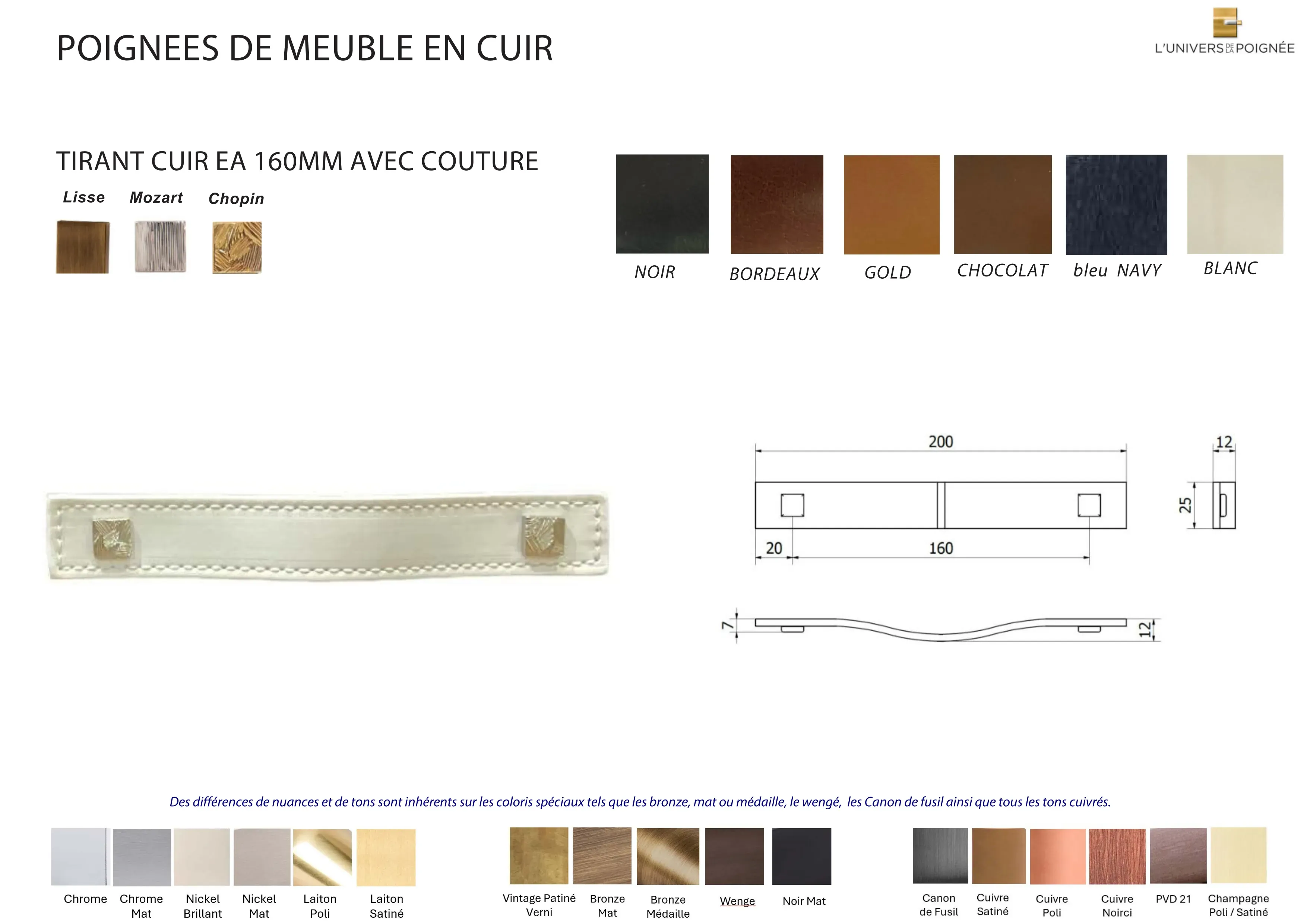 Cette collection de tirants de meuble en cuir se distingue par son design épuré et naturel. Disponible en cuir lisse ou surpiqué, elle offre un choix de différents coloris : noir, bordeaux, gold, bleu navy, chocolat et blanc, permettant de s’adapter à diverses ambiances et styles d’intérieur.