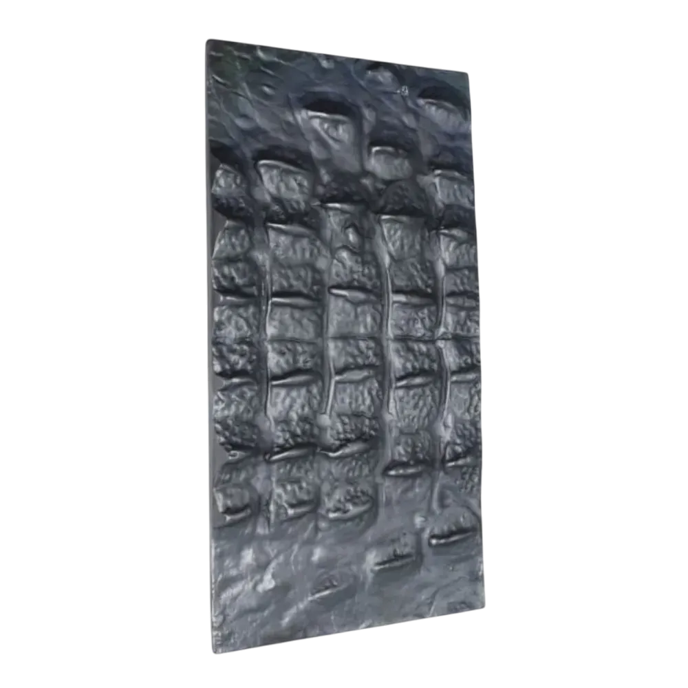 La plaque de tirage rectangle Croco 300x150 mm est un modèle en bronze de grande taille, conçu pour habiller aussi bien les portes de communication que les façades de meubles. Réalisée à partir d’un moule original créé par un sculpteur, elle reproduit fidèlement l’empreinte d’une véritable peau de crocodile.