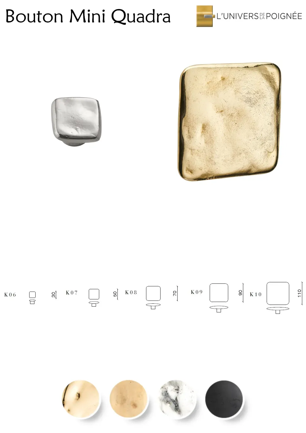 Bouton Mini Quadra 50x50mm – Bronze carré design